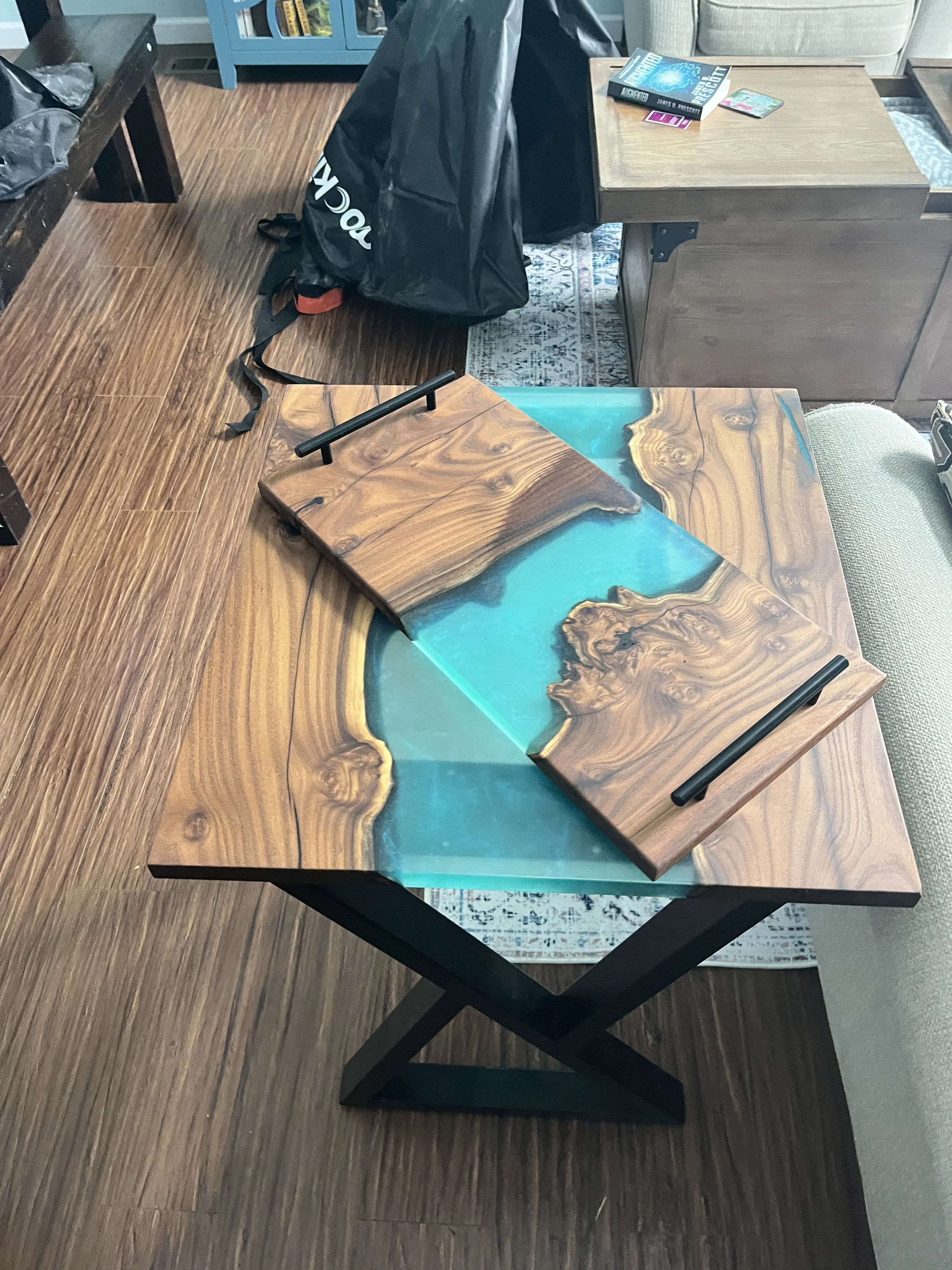 A custom set for a wedding, made from russian olive and epoxy resin. If you want to see it built, you can click here to watch it.